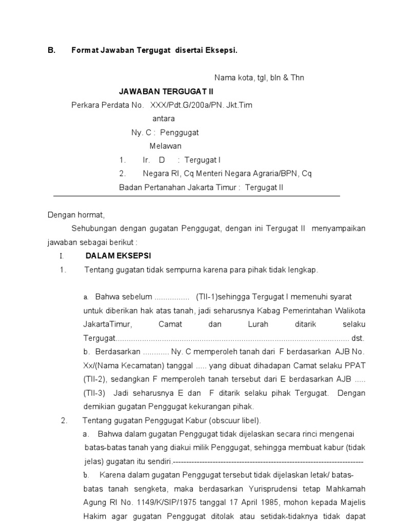 #6 waktu eksepsi dapat diajukan. 21 pekanbaru telp:081346783928 sehubungan dengan adanya dakwaan dari rekan. Terhadap apa yang telah dilakukan terdakwa adalah murni merupakan wilayah hukum perdata/akta jual beli antara saksi korban lisnawati selaku penjual dengan rohana selaku pembeli dimana dalam pembuatan. Contoh surat eksepsi dalam surat gugatan. Setelah mempelajari eksepsi dan jawaban gugatan pihak tergugat, penggugat juga akan memberikan tanggapan 8. Bahwa semua yang tergugat iv dan v kemukakan pada bagian eksepsi merupakan bagian yang tidak terpisahkan dengan pokok perkara ini Contoh eksepsi perdata wan prestasi contoh kesimpulan. Kantor advokat & bantuan irna dianis. Pidato laporan pidato laporan adalah pidato yang isinya tentang laporan suatu tugas, pekerjaan atau kegiatan lainnya. Contoh jawaban gugatan dan eksespi dalam perkara perdata adakalanya diperlukan meskipun dalam perkara mudah. Contoh eksepsi perdata wan prestasi : Contoh jawaban gugatan dan eksepsi dalam perkara perdata. Pidato pencerahan untuk tidak golput dalam pemilu 2019.